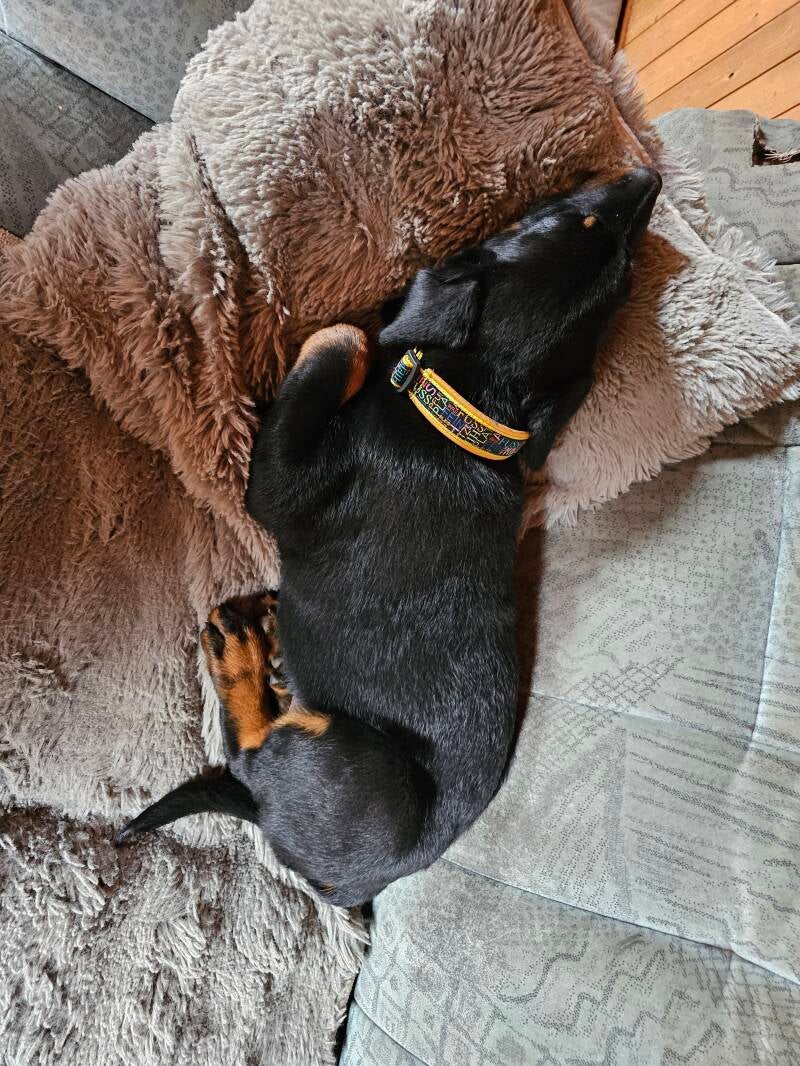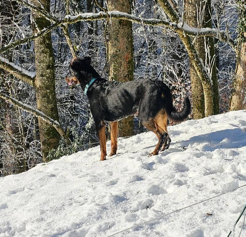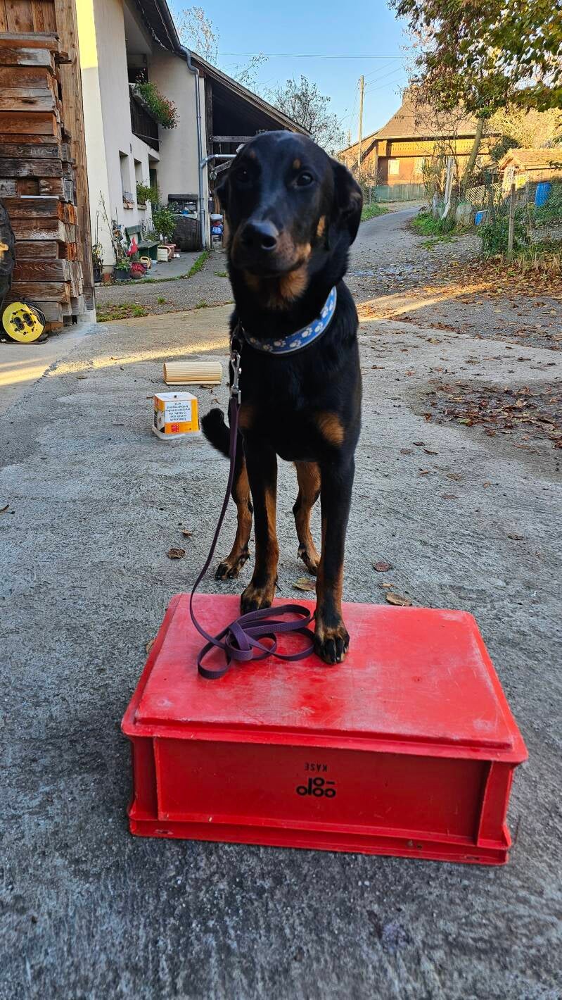 Nela ist eine aufgestellte, freundliche sehr lebhafte Junghündin. Bis jetzt zeigt sie dass sie gerne Nasenarbeit macht.